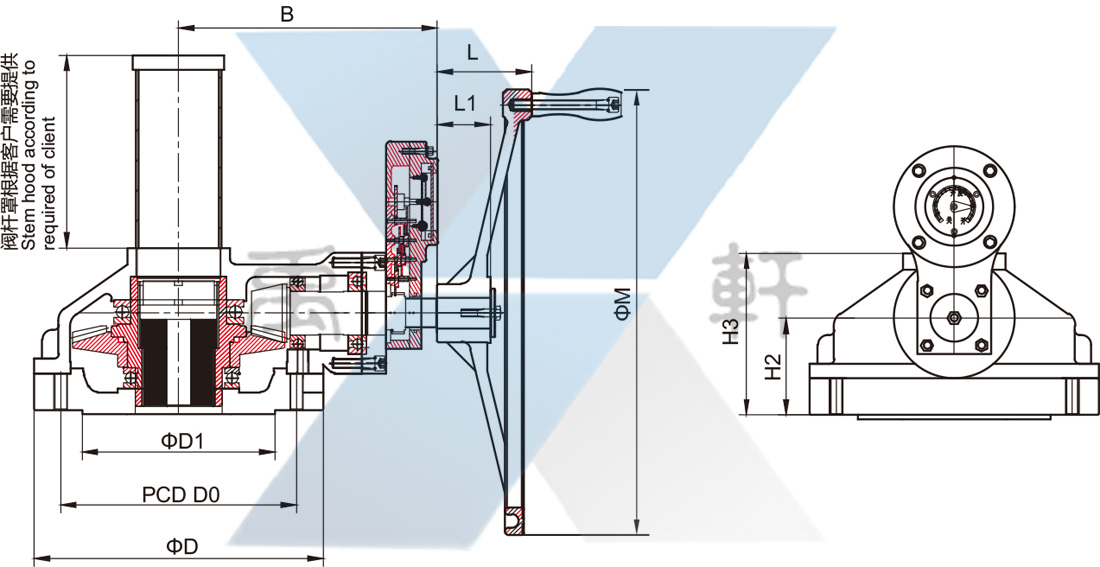 多回轉(zhuǎn)型帶開度指示閥門手動裝置尺寸圖