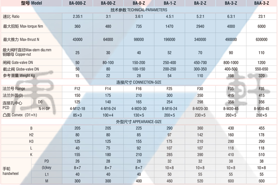 BA-Z多回轉(zhuǎn)型帶開度指示閥門手動裝置連接尺寸
