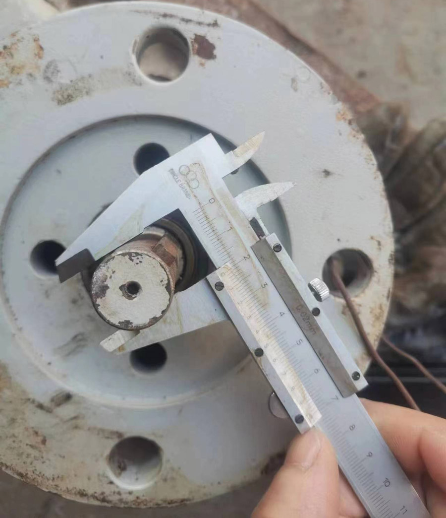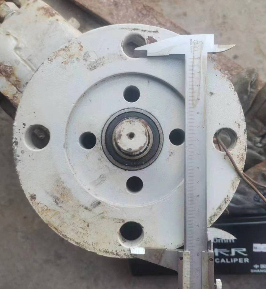 如何測量一臺電動蝸輪箱的電機(jī)端連接尺寸,它包括連接軸的尺寸,連接法蘭盤的尺寸,螺絲孔的尺寸,銷子尺寸,這種是推力型的電動連接方式。
