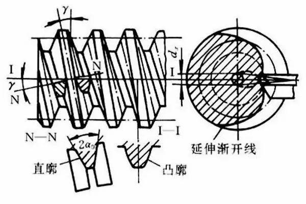 蝸桿齒面為漸開螺旋面,端面齒廓為漸開線。