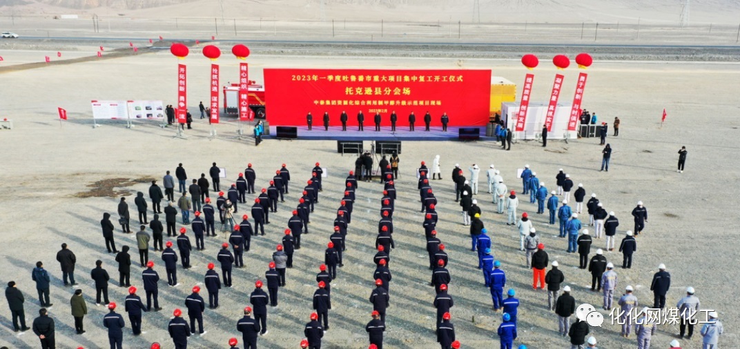 儀式在新疆中泰化學(xué)新材料股份有限公司資源化綜合利用制甲醇升級示范項目現(xiàn)場舉行,該項目總投資60億元,占地1350畝,建設(shè)周期24個月。該項目于2022年9月28日宣布正式開工建設(shè),目前已開展了項目設(shè)計、主關(guān)鍵設(shè)備訂購、施工策劃準備等工作,截至目前,已累計完成總投資4.96億元。2023年上半年將主要開展各工序土建工作,2023年下半年進入到土建與安裝交叉階段,部分公輔裝置進入設(shè)備安裝階段。
