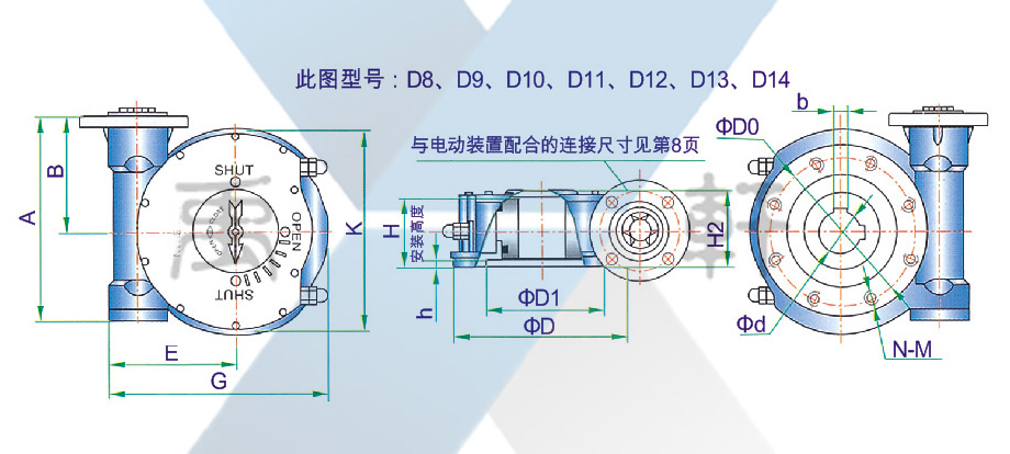 QDX3-D10電動(dòng)閥門蝸輪箱是一款90°部分回轉(zhuǎn)驅(qū)動(dòng)裝置,適用于球閥、蝶閥、旋塞閥等類型閥門。閥門電動(dòng)裝置特殊型可輸出360°多回轉(zhuǎn)型。產(chǎn)品共有13個(gè)型號(hào)-QDX3-D4,QDX3-D5,QDX3-D6,QDX3-D7,QDX3-D8,QDX3-D9,QDX3-D1O,QDX3-D11,QDX3-D12,QDX3-D13,QDX3-D13D,QDX3-D14,該系列是與多回轉(zhuǎn)閥門電動(dòng)裝置組合而成的一種部分回轉(zhuǎn)型閥門電動(dòng)驅(qū)動(dòng)裝置。蝶閥可配套 DN300-DN2200 規(guī)格上使用,總共有10個(gè)等級(jí)規(guī)格。球閥可配套DN100-1200規(guī)格上使用,總共有12個(gè)等級(jí)規(guī)格。
